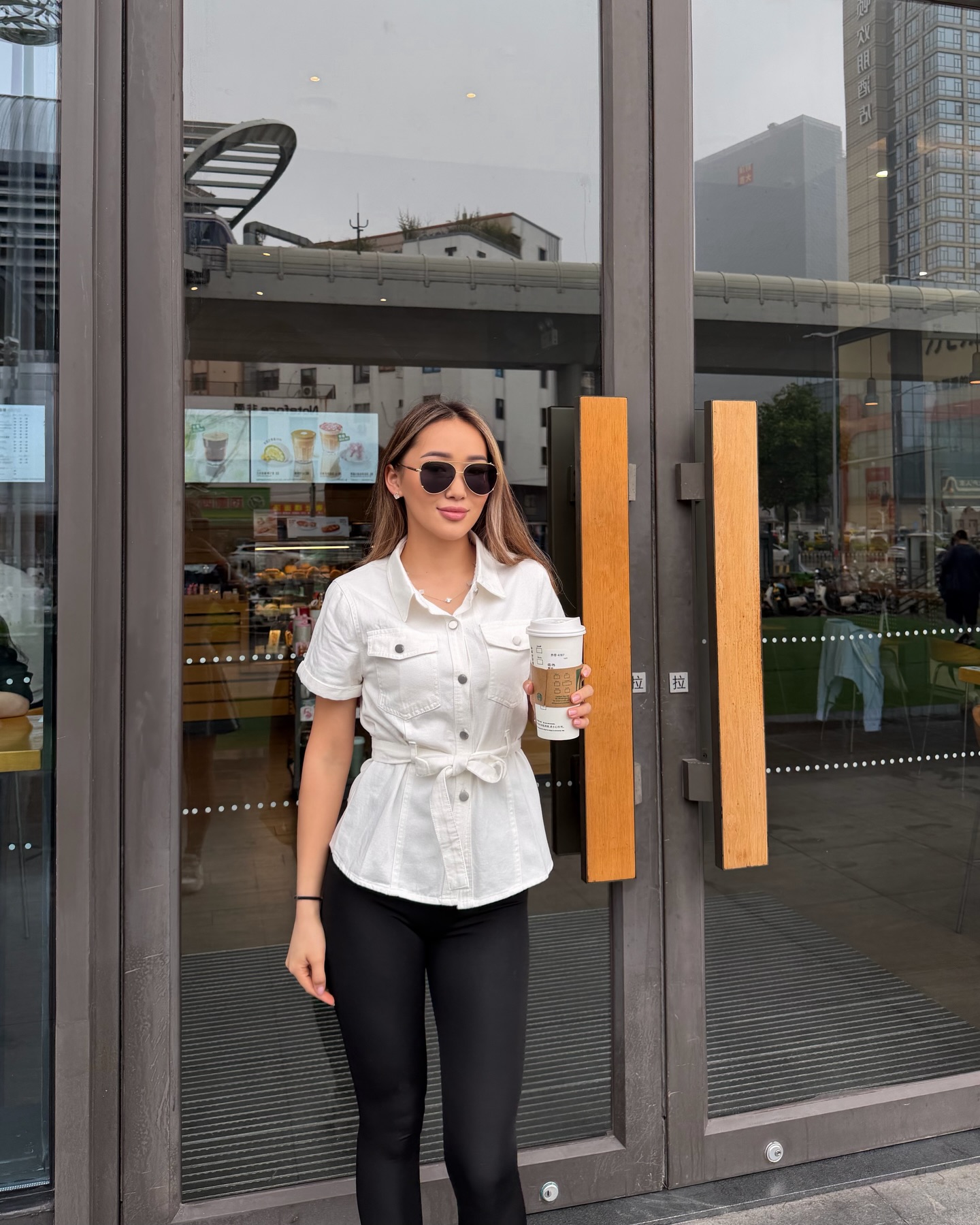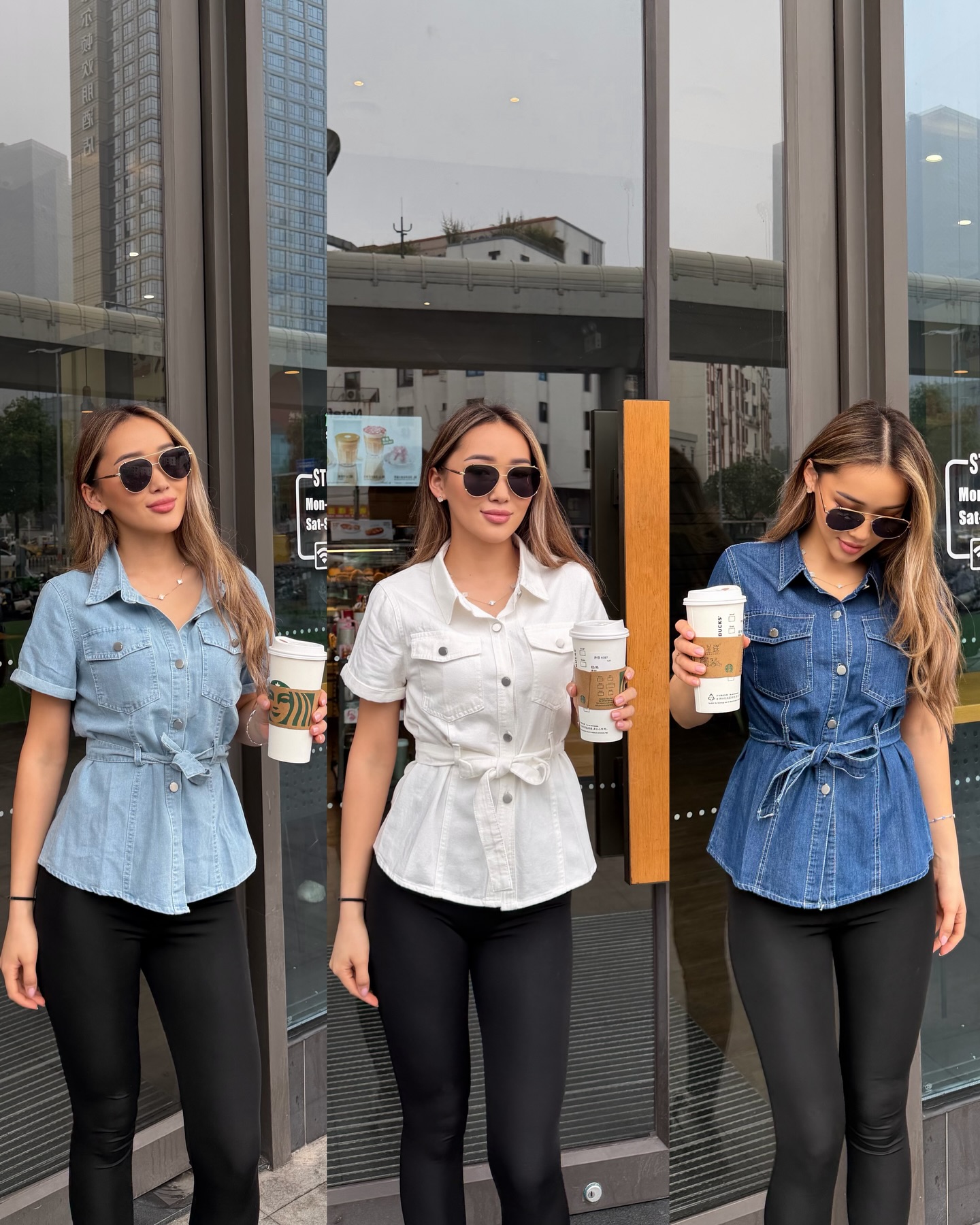 Ищете идеальную базу для стильных городских будней? Эта рубашка — воплощение непринужденного шика. Короткий рукав, накладные карманы и отложной воротник создают актуальный силуэт. Изюминка модели — пояс, завязывающийся на кокетливый бант: он эффектно подчеркивает талию, делая образ более женственным и утонченным. Носите ее расстегнутой поверх топа или как самостоятельный элемент гардероба. Эта рубашка идеально дополнит ваши любимые джинсы, брюки-скинни или шорты. Доступна в трех универсальных оттенках, которые легко впишутся в любой образ.